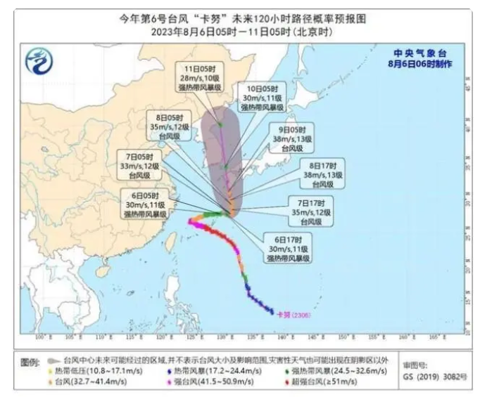 韩国气象厅8月6日表示,今年第6号台风“卡努”路径向韩国庆尚圈海岸方向调整,预计9日起将直接影响位于该国东南部的釜山、蔚山和庆尚南道。