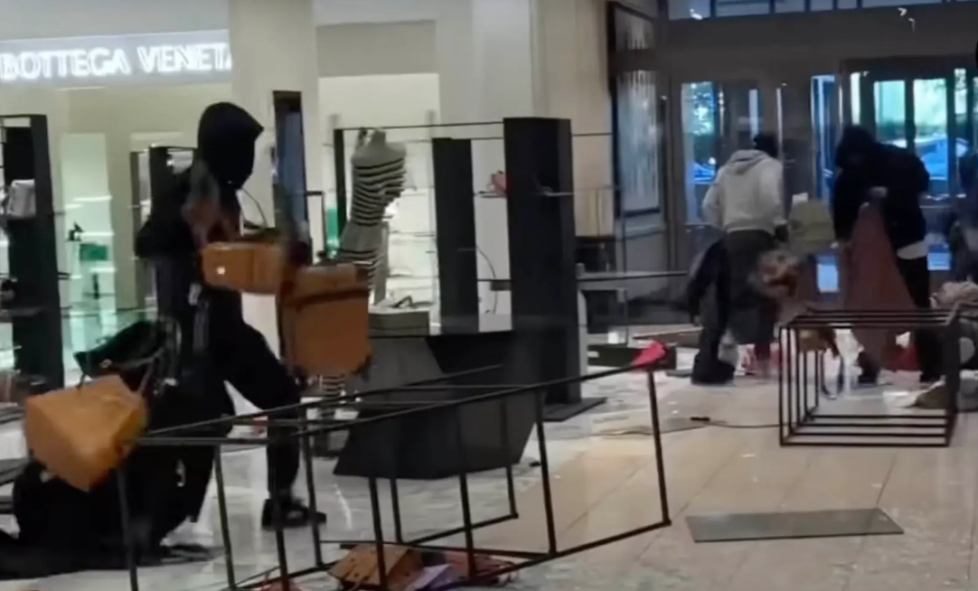 警方称,这些劫匪戴着兜帽和口罩,光天化日之下,冲进店铺内抢走昂贵的包和衣服。劫匪打翻货架和人体模型,疯狂抢夺任何能携带的东西,店员只能无助地看着。价值约6万美元至10万美元的东西被劫走,作案结束后,劫匪驾驶宝马等多辆汽车逃跑。
