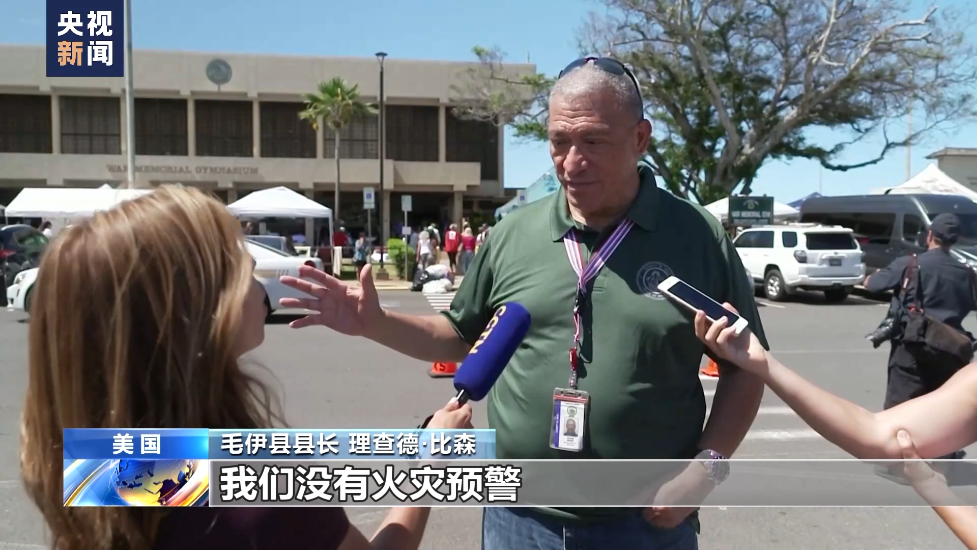 毛伊县县长 理查德·比森:一般来说,我们没有火灾预警,我不知道其他地方是否如此。警报一般需要你回到家里,打开电视看相关的新闻报道,这通常是针对海啸或者飓风的。但是如果发生火灾,我们不想让大家回家去打开电视,而是希望大家能够疏散。