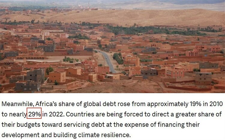 “(非洲)各国正被迫将更大比例的政府预算用于偿还债务,牺牲了资助发展和气候应对韧性建设。”