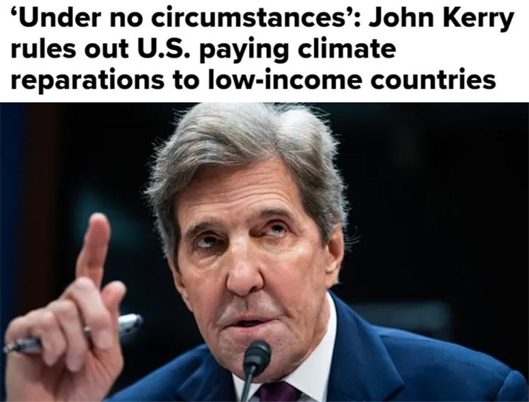 在7月的国会听证会上,接受质询的美国总统气候问题特使约翰·克里为了迎合共和党人,竟然公开拒绝向遭受气候灾害重创的发展中国家提供补偿资金——“美国不会给钱,在任何情况下都不会”。