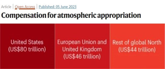 研究人员还特别指出,这一补偿金额仅涉及对低排放国家碳排放公平份额被占用的补偿,并不包括发达国家原本就该为发展中国家提供的气候援助。