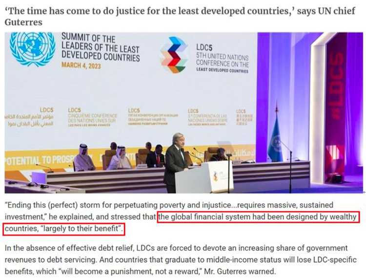 在今年3月举行的第五次联合国最不发达国家问题会议(LDC5)上,联合国秘书长古特雷斯再次敦促美西方兑现援助承诺。