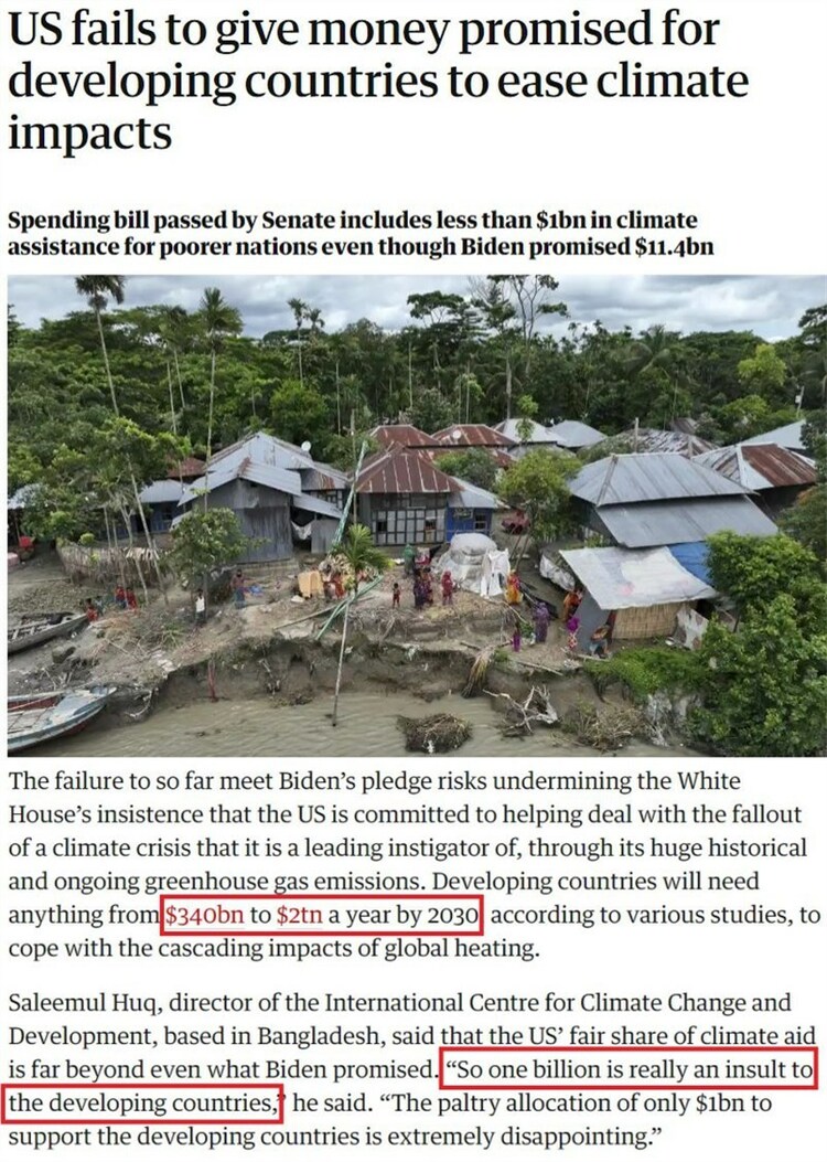 在国际气候变化与发展中心主任萨勒姆·哈克看来,这点钱“对于发展中国家来说真的是一种侮辱”。