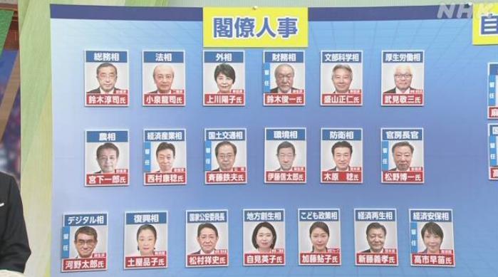 从调整结果来看,总共有11人首次进入内阁,包括总务大臣铃木淳司、文部科学大臣盛山正仁以及防卫大臣木原稔等,表面看起来确实很“新”。