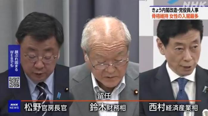 不过,内阁官房长官、财务大臣、经济产业大臣等多个要职都没有人员变动。与此同时,在自民党高层人事方面,副总裁麻生太郎、干事长茂木敏充以及政调会长荻生田光一均得以留任。