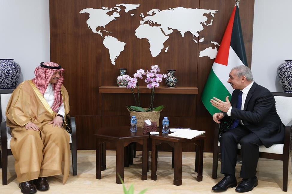 当地时间9月27日,在约旦河西岸城市拉姆安拉,巴勒斯坦总理穆罕默德·阿什提耶会见了沙特驻巴非常驻特命全权大使纳伊夫·苏德里。