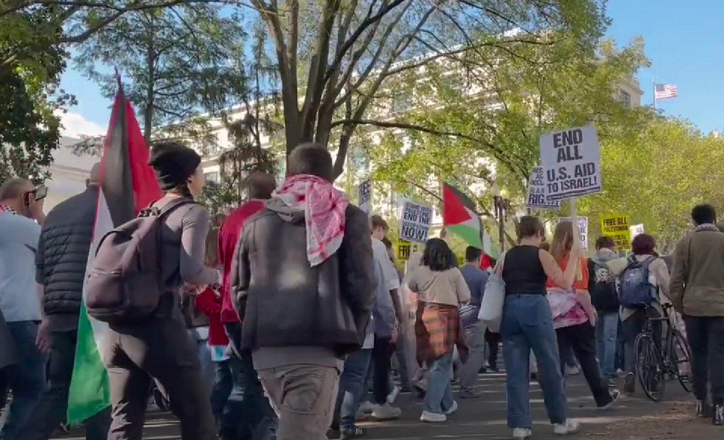 在亚特兰大、芝加哥等地,巴勒斯坦裔美国人在以色列领事馆外抗议,呼吁美国停止对以色列的援助。