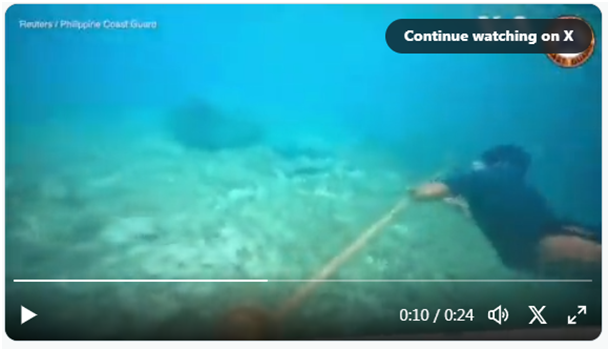 几个小时后,菲律宾海岸警卫队宣布已拆除浮动障碍。警卫队还发布视频,展示了拆除作业的过程。