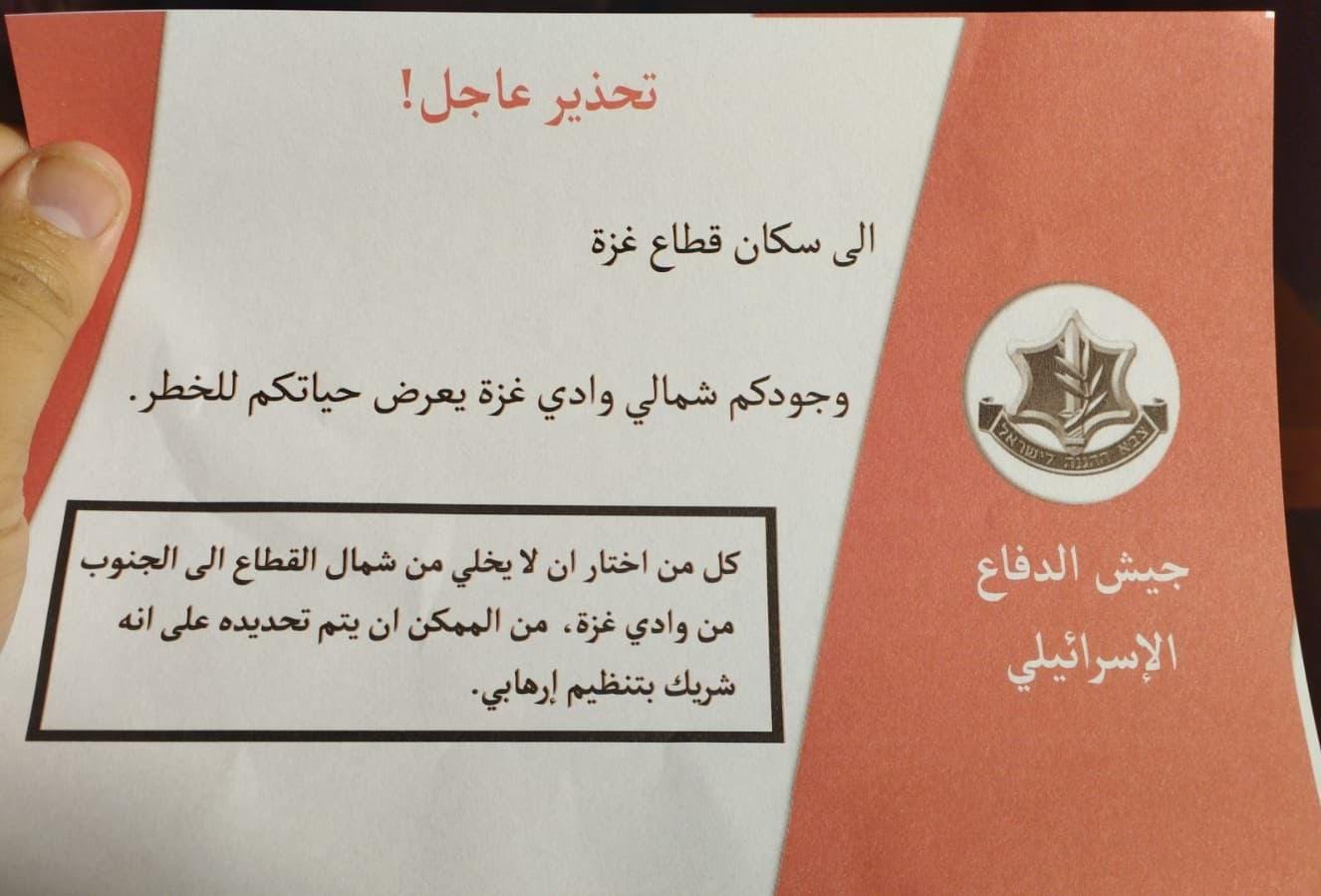 《耶路撒冷邮报》称,该警告信息通过印有以色列国防军标志的传单发放,并通过手机音频信息发送给加沙地带巴勒斯坦民众。