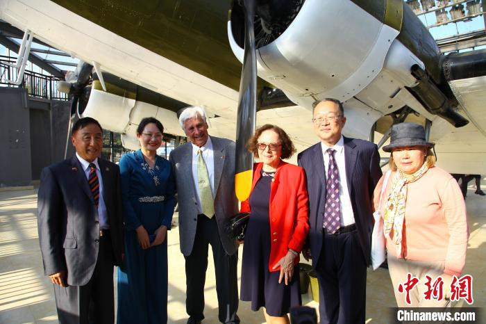 捐赠仪式结束后,与会嘉宾共同参观飞机馆。辛西娅·陈纳德看到曾在驼峰航线使用过的C-47运输机时,她兴致勃勃地爬上驾驶舱,并与美国飞虎队历史委员会总裁拉里·林恩·乔布一起向嘉宾挥手示意。