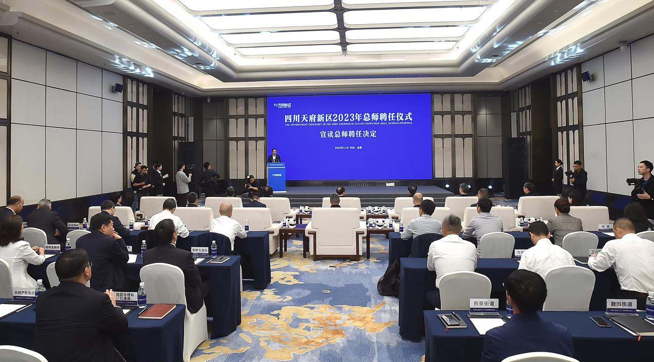 11月2日,四川天府新区举行2023年总师聘任仪式暨总师座谈会,宣布总师聘任决定并颁发总师聘书,四川天府新区总师办公室正式揭牌。随后的座谈会上,总师们围绕四川天府新区如何打造和展示“中国式现代化的万千气象”,探索中国式现代化城市发展道路发表建议或意见。