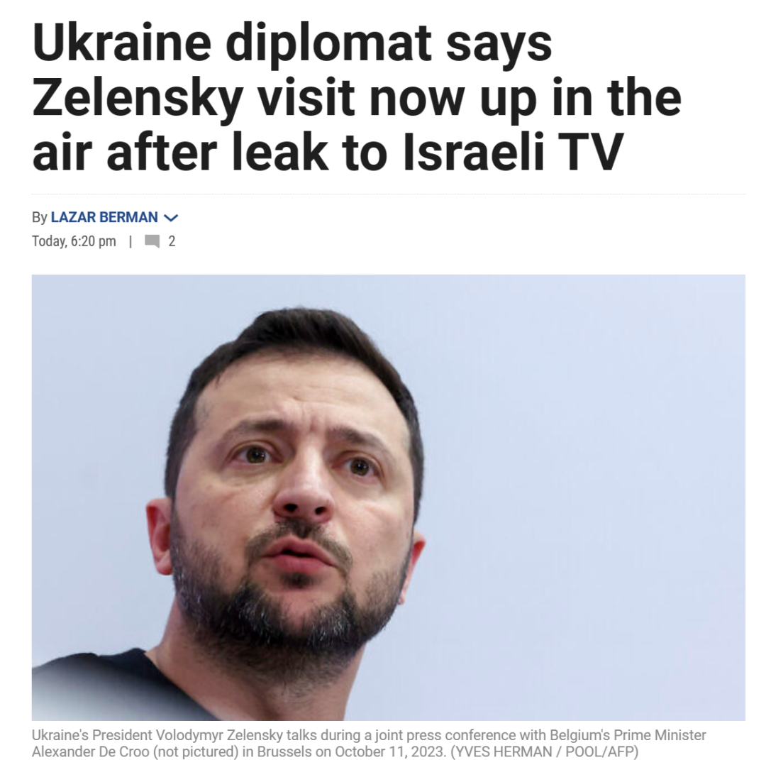 据一位不具名的乌克兰外交官表示,泽连斯基此前确实正在计划访问以色列,但他希望“在踏上以色列国土后再公开消息”。由于以色列第12频道提前泄露了这一消息,综合安全及各方面因素,乌克兰方面决定暂缓这次访以计划。这名外交官表示自己对此“非常遗憾”。