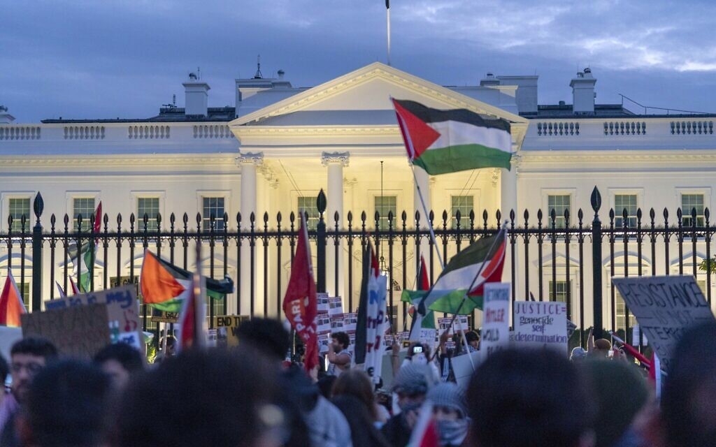 在美国首都华盛顿,民众游行至白宫前。反战组织“即刻行动制止战争消除种族主义”联盟全国协调员布赖恩·贝克尔告诉俄罗斯卫星通讯社,至少10万人参加游行,是美国历史上规模最大的一次声援巴勒斯坦游行。德新社则援引游行组织者的消息报道,参加人数达到30万。
