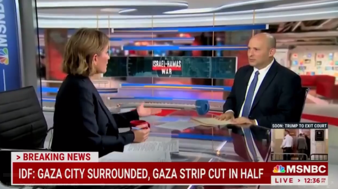 【环球网报道】巴以新一轮冲突仍在持续。据美国福克斯新闻网报道,以色列前总理贝内特当地时间6日在美国微软-全国广播公司(MSNBC)与节目主持人激辩巴以冲突和加沙历史,期间他反驳主持人话称,加沙“已经得到了想要的一切”。