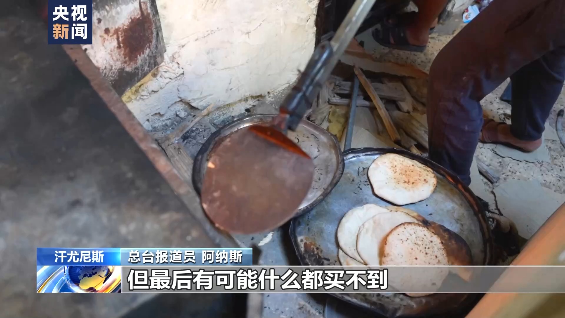 总台报道员 阿纳斯:我们用一些木柴和这个破旧的烤箱来烤面饼,因为现在面饼很难买到,获取食物非常困难。想买到面饼就得等很长时间,但最后有可能什么都买不到。