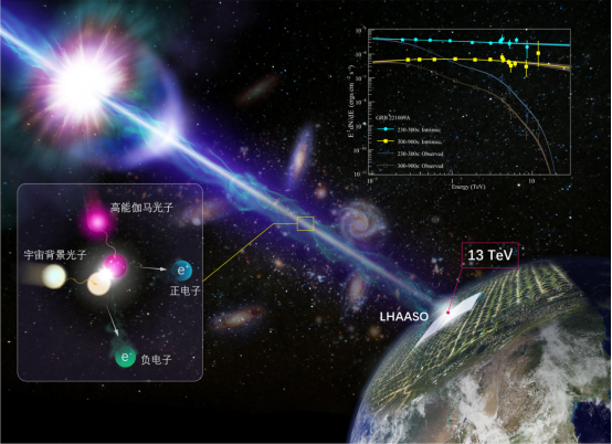 【环球时报-环球网报道 记者 樊巍】“宇宙中的背景光并不一定像我们想象的那么‘厚’,光在宇宙中的速度并不是恒定在299,792.458千米/秒,它有可能更快,也有可能更慢。”近日,国家重大科技基础设施“高海拔宇宙线观测站(LHAASO)”(简称“拉索”)正式发布迄今最亮的伽马射线暴的高能伽马辐射精确能谱,该成果揭示出宇宙背景光在红外波段强度低于预期,同时也检验了爱因斯坦相对论的适用范围,相关研究成果于美国东部时间11月15日在《科学进展》上正式发表。