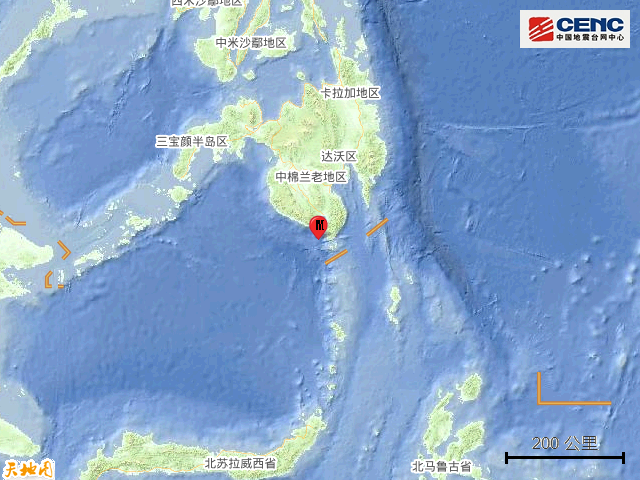 据中国地震台网正式测定,北京时间11月17日16时14分(当地时间11月17日16时14分)在菲律宾棉兰老岛发生6.8级地震,震源深度70公里,震中位于北纬5.55度,东经125.15度。
