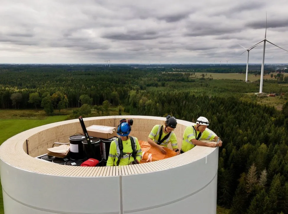 【环球时报综合报道】瑞典初创公司Modvion建造了全球最高的木制风力涡轮机塔。据英国广播公司27日报道,这个风力涡轮机塔整体高度达150米,能为瑞典约400户家庭提供电力。