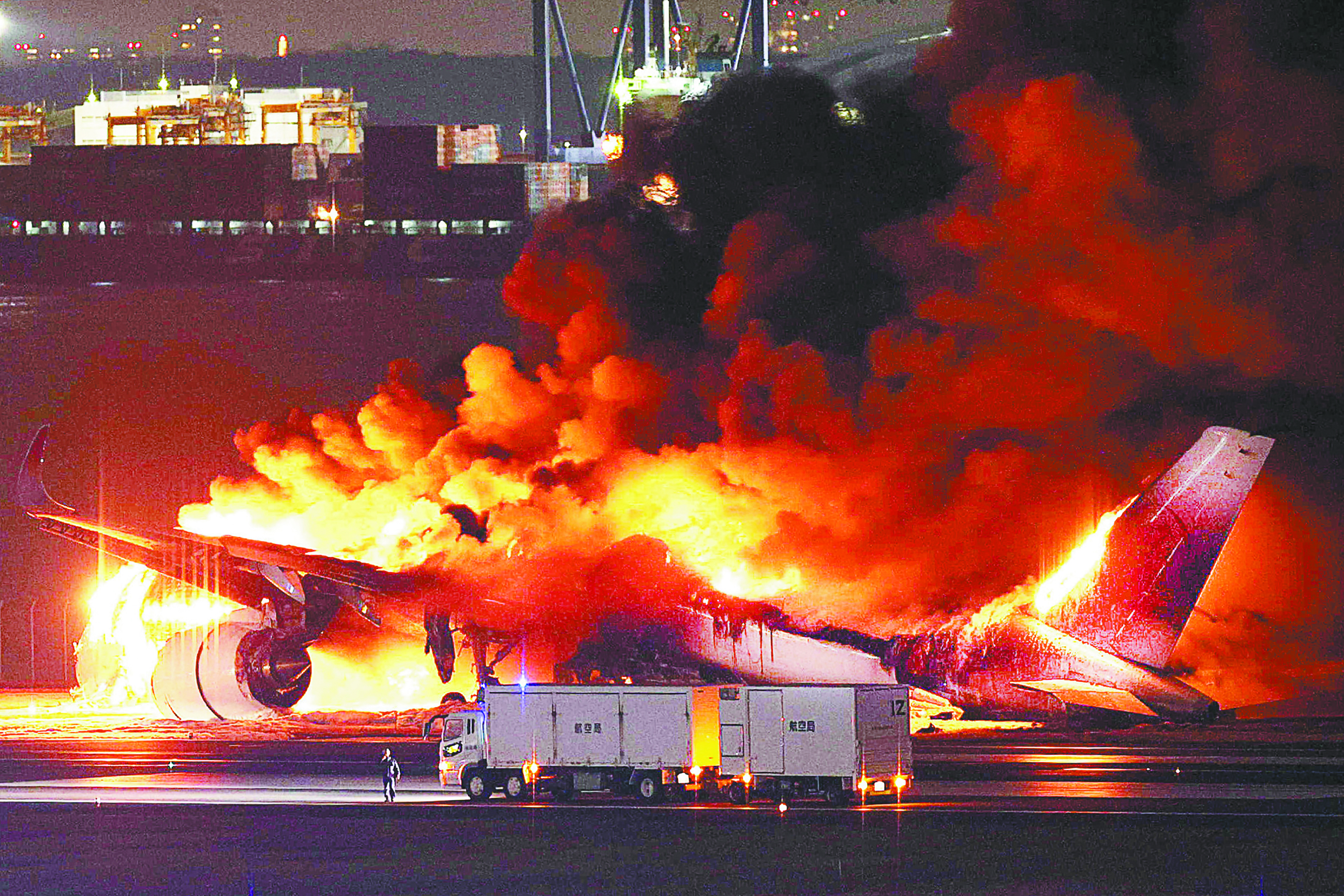 祸不单行,日本航空公司一架客机2日在东京羽田机场降落时与日本海上保安厅飞机相撞后起火。日本航空称,客机上共有379人,其中乘客367人,机上人员全部撤离,共有14人受伤。海保方面称,与客机发生碰撞的飞机计划向能登半岛地震灾区运送物资,正准备飞往新潟。日本警方称,本次撞机事件造成海保飞机内搭载的6人中5人死亡,机长重伤。