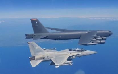 据菲律宾通讯社报道,菲律宾空军发言人19日通报,菲方三架FA-50战机与美军一架B-52轰炸机当日在菲专属经济区内展开联合空中巡逻。这位发言人表示,巡逻范围涵盖南伊罗戈省坎东以西90海里(约166公里)和民都洛岛卢邦西北50海里的地区。