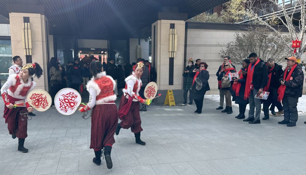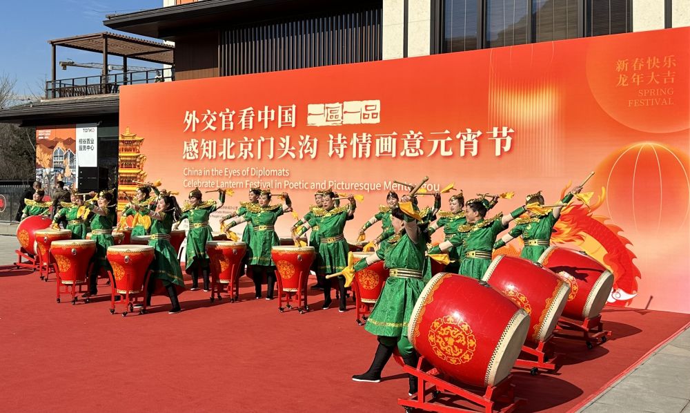 军庄大鼓、太平鼓、地秧歌、小车会、舞龙……现场年味十足的中国传统节目23日亮相“外交官看中国-感知北京门头沟诗情画意元宵节”暨“一区一品”驻华使节深度体验北京活动上。
