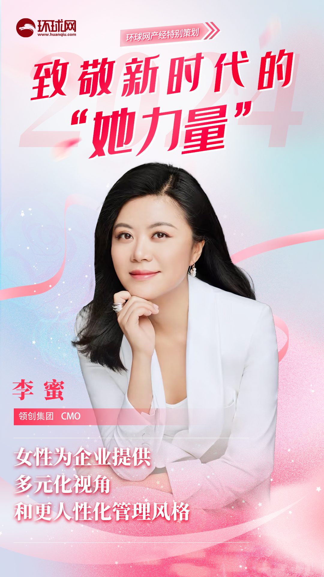 领创集团CMO(首席营销官)李蜜在接受环球网专访时表示,现代企业经常会面临重大决策、变革或者挑战,这时女性的存在能够帮助公司更好地应对困境,面对挑战,渡过特别的难关,女性力量在这个过程中不可忽视。在制定策略和决策时,考虑到女性的观点和需求将为企业带来更多成功的机会。