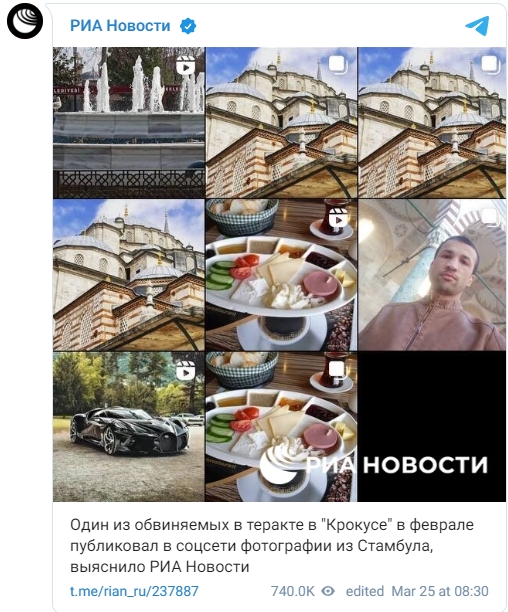 俄新社在调查中发现,法里杜尼2月23日曾在网上发布了多张照片,照片的定位在土耳其伊斯坦布尔。这些照片中有一张法里杜尼的自拍,其似乎是在一座清真寺内。