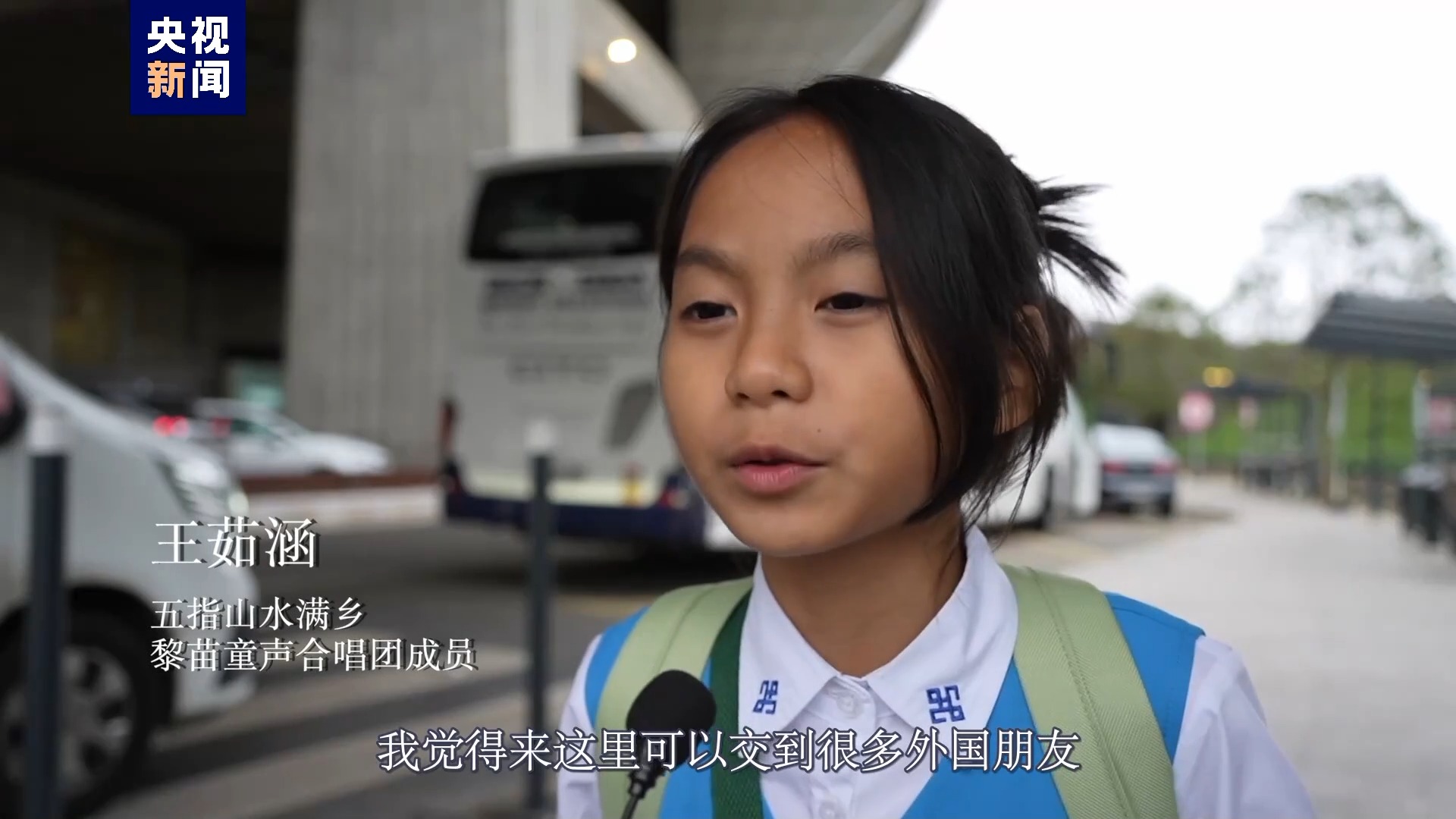 五指山水满乡黎苗童声合唱团成员 王茹涵:我觉得来这里可以交到很多外国朋友。我很喜欢合唱团,它可以带我们去学习很多知识。