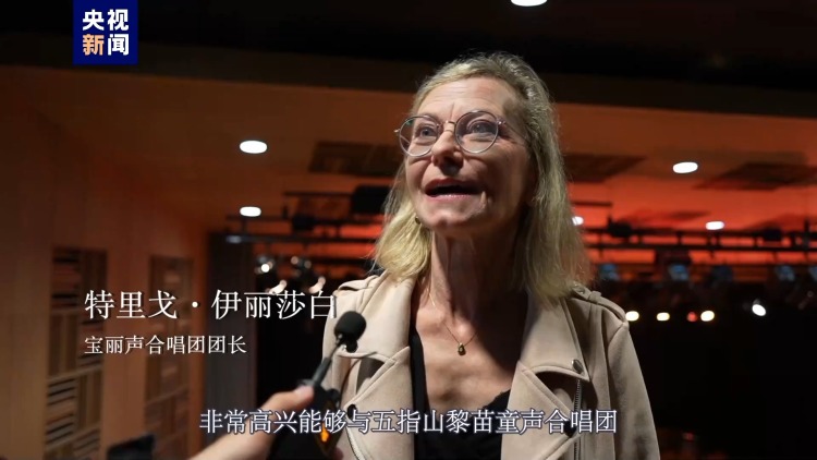 宝丽声合唱团团长 特里戈·伊丽莎白:非常高兴能够与五指山黎苗童声合唱团一起庆祝中法建交60周年,我们在一起很开心。