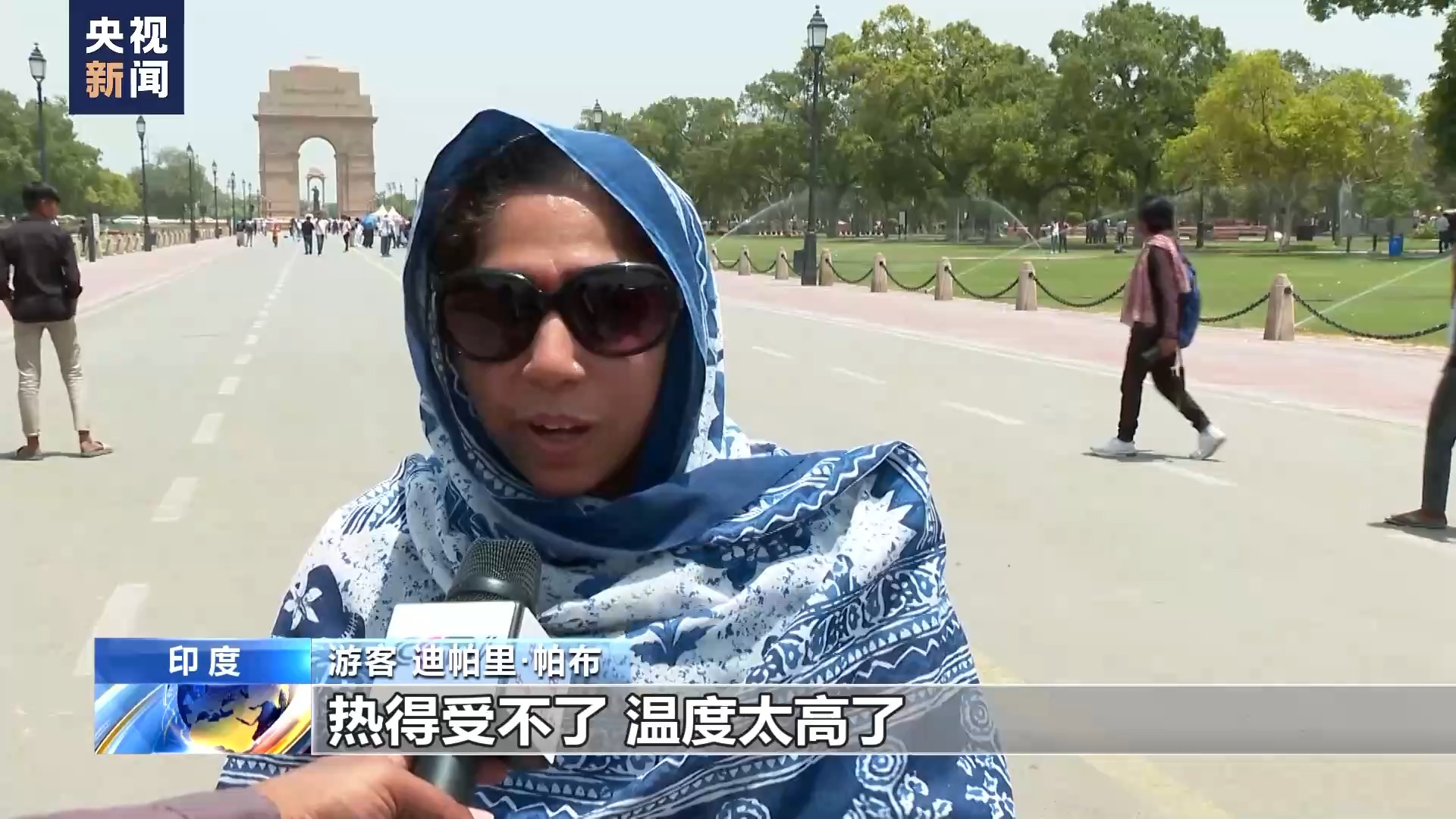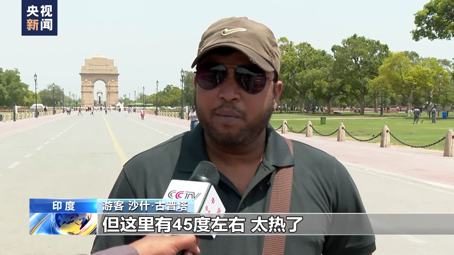 游客沙什·古普塔:如果把新德里和加尔各答的气温比较一下,新德里的气温太高了,因为加尔各答的最高温度是36℃到38℃,但这里已经有45℃左右,太热了。