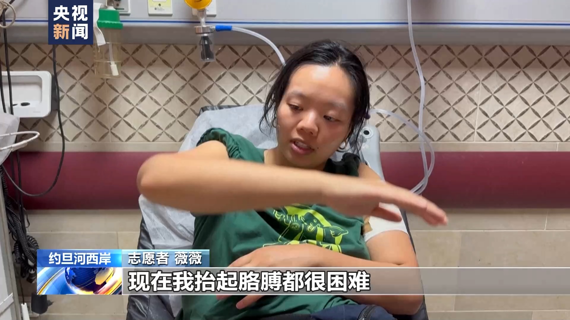 志愿者 薇薇:他们打我这里,这里,还有这里,现在我抬起胳膊都很困难。这就是当地巴勒斯坦人每天面临的事情,这太荒谬了。