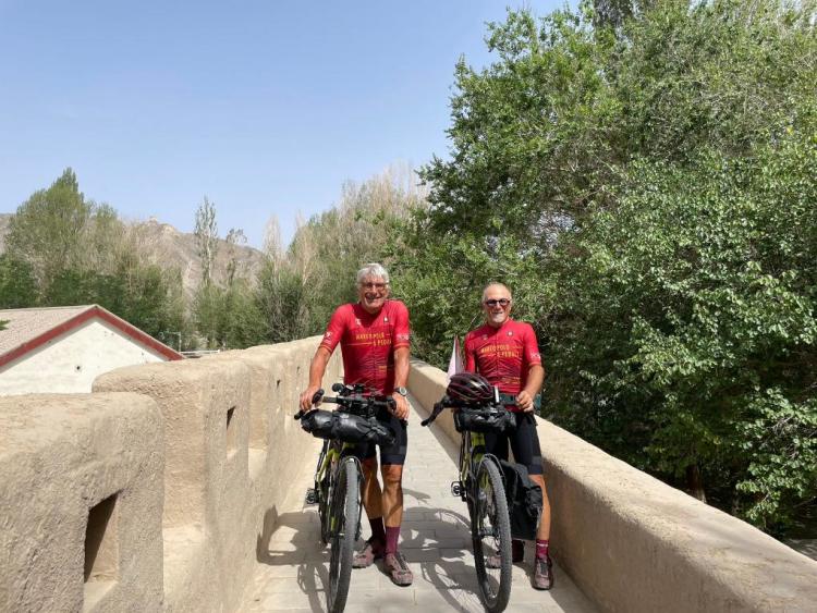 菲奥林与法基内蒂的红色骑行T恤上,用意大利语印着“Marco Polo a Pedali”,意为“自行车上的马可·波罗”。“我们想重走马可·波罗之路,向这位伟大的威尼斯旅行家致敬。”菲奥林接受新华社记者采访时说,“马可·波罗旅行非常缓慢,步行、骑马,甚至乘船。我们也想用一种非常慢的交通方式,可以看到经过的风景,一米一米地征服道路,沿途风光将不可磨灭地留在眼里、心中。”