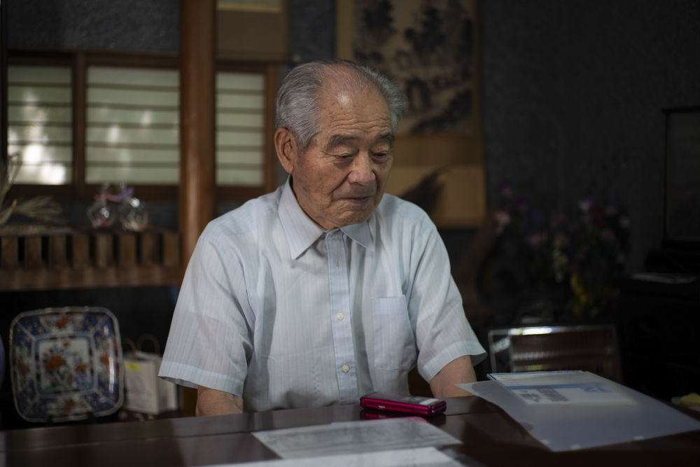 8月10日,清水英男在日本长野县的家中接受新华社记者采访。新华社记者张笑宇摄