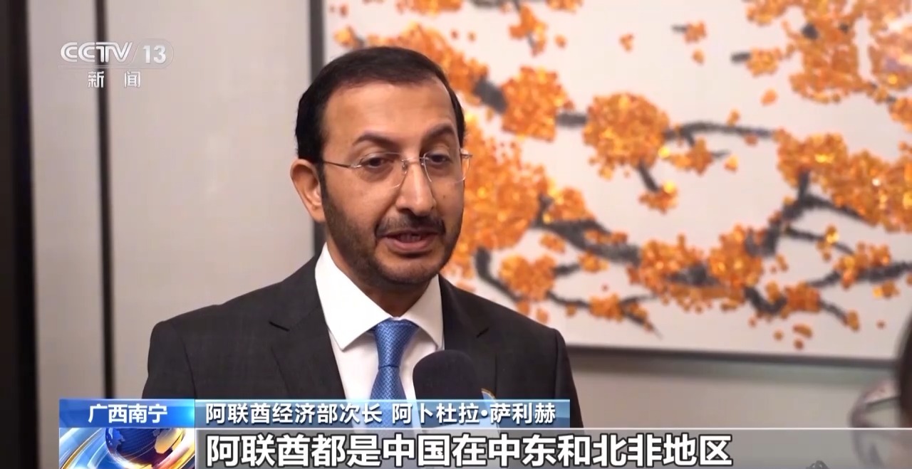 阿联酋经济部次长 阿卜杜拉·萨利赫:很长时间以来,阿联酋都是中国在中东和北非地区最大的贸易伙伴之一。在过去的近20年里,中国也是阿联酋头部的贸易伙伴。在东盟博览会上,我们看到了更多的合作机遇。