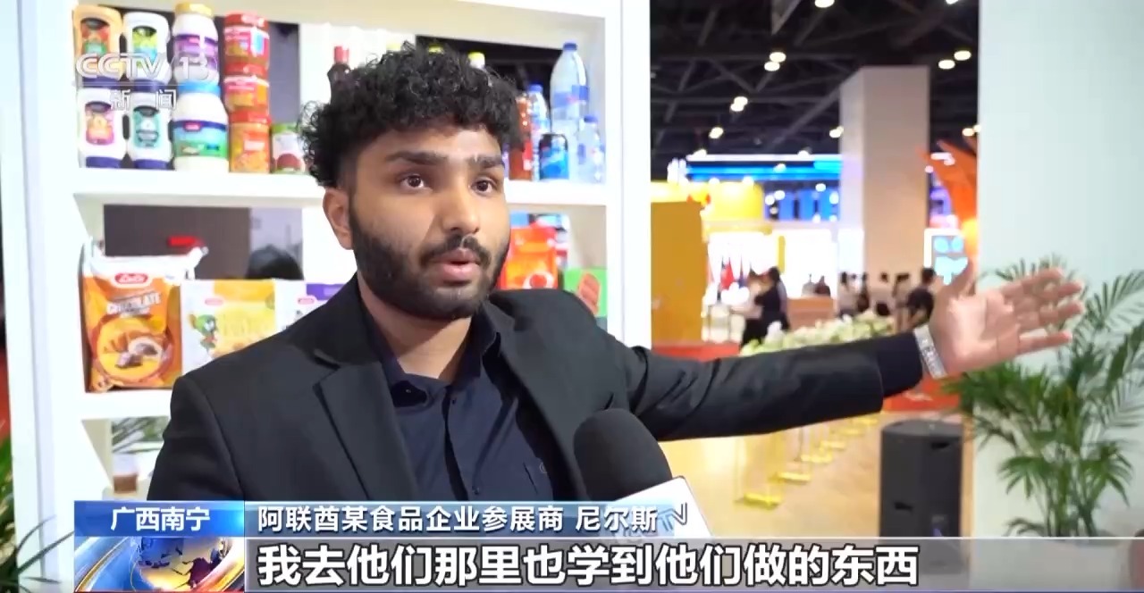 阿联酋某食品企业参展商 尼尔斯:我旁边有老挝、柬埔寨展厅,我去他们那学他们做的东西,他们也来我这里学。
