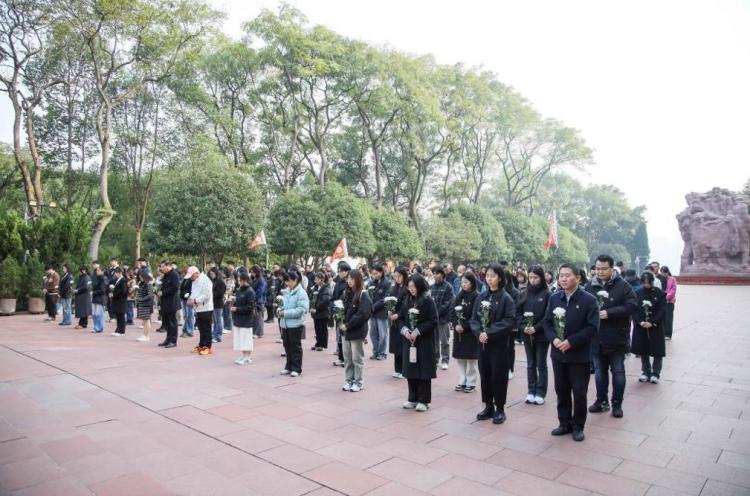 天地英雄气,千秋尚凛然。为深切缅怀革命先烈,传承红色基因,弘扬红岩精神,11月30日上午,重庆理工大学联合重庆日报公益频道在歌乐山烈士陵园组织开展“11·27”烈士殉难75周年祭扫活动,缅怀“11·27”殉难烈士。重庆理工大学党委研究生工作部部长、研究生院院长苏平,党委研究生工作部副部长、研究生院副院长李恩,重庆市文化和旅游发展研究会副会长龚长生出席活动。