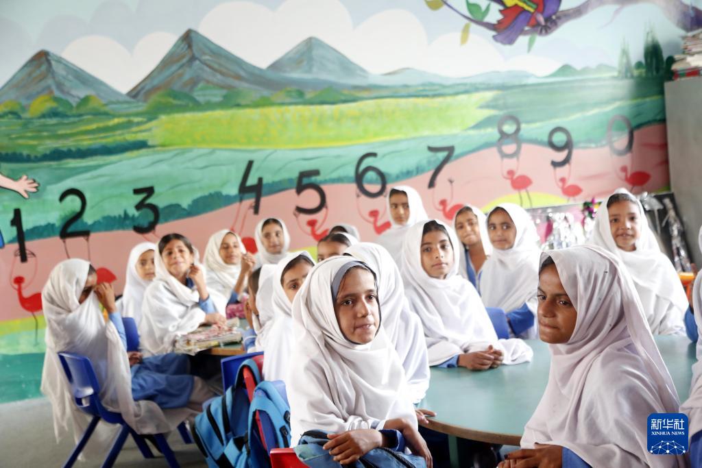 走进干净整洁的校园,读书声、嬉戏声声声入耳,孩童的活力、青春气息扑面而来。在八年级的课室里,戴着一条写有“文学比赛冠军”红绶带的女学生萨伊巴·阿斯加尔·阿里成功抢到了回答问题的机会,正在大声地在全班面前朗诵英语课文。萨伊巴告诉记者,她有七个姐妹,如果没有这所学校,她可能就没学上了。