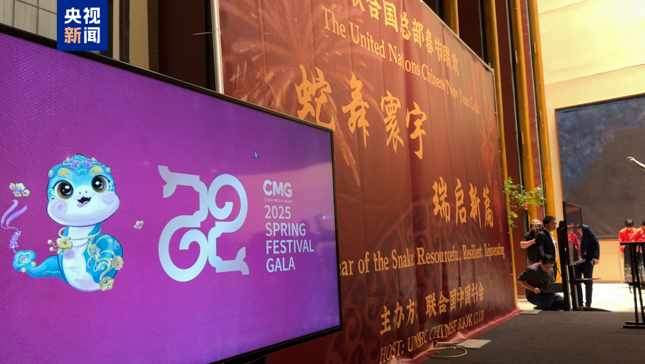 △联合国总部春节联欢活动现场播放总台春晚宣传片