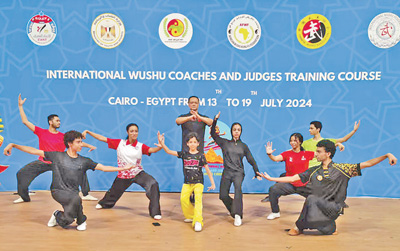 中国武术教练组在开罗为埃及武术教练员以及国家青年武术队队员等授课。周庆杰摄
