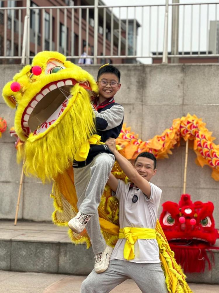 图为天府第七中学北狮队在2024年全国青少年舞龙舞狮锦标赛上获得创意龙狮冠军