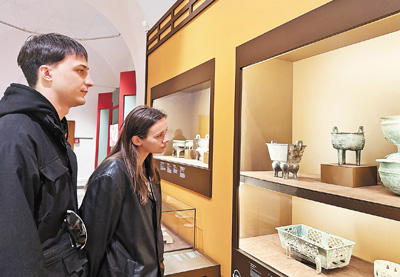 5月5日,俄罗斯观众在莫斯科参观“食味中华——中华古代饮食文化展”。
