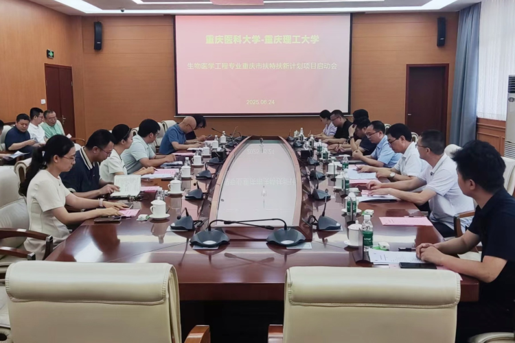 6月24日上午,重庆医科大学与重庆理工大学在重庆理工大学花溪校区博园六会议室联合召开“生物医学工程专业重庆市扶特扶新计划项目”启动会,标志着两校生物医学工程专业全方位合作正式启航。两校教务处、二级学院领导班子、系室主任及骨干教师代表共同见证这一重要时刻。