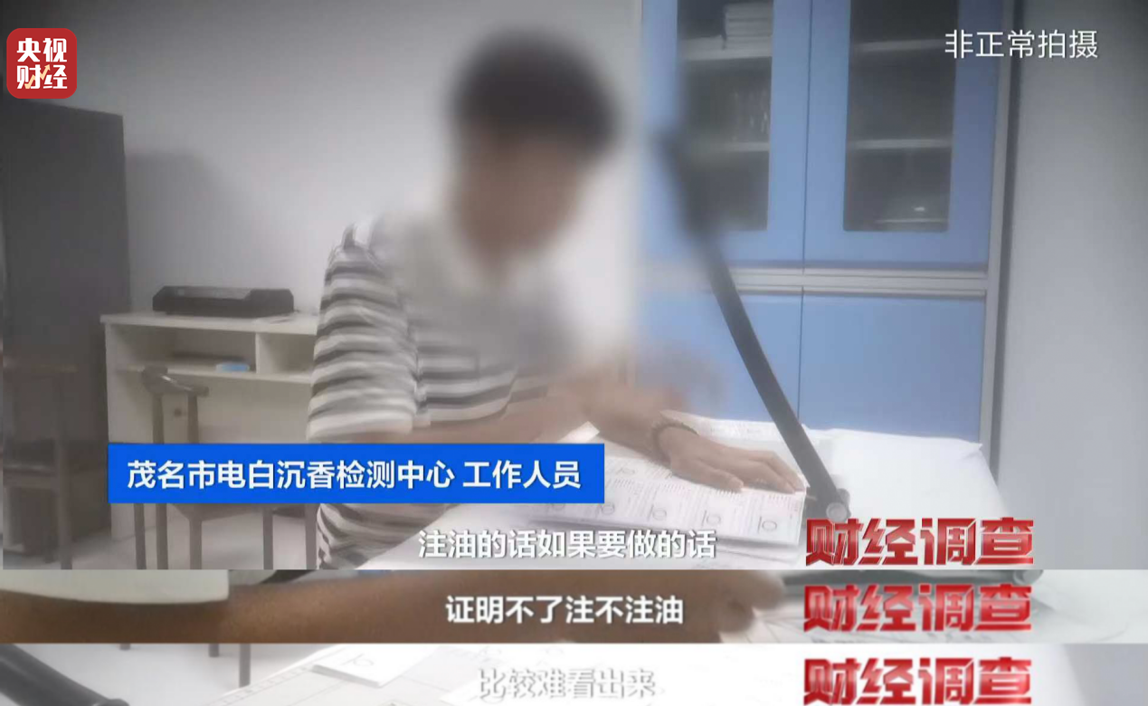 更令人震惊的是,即便记者说明手串有问题,检测中心仍出具证书,并解释只要气味无异味、结构清晰、符合海南标准的沉香“四大要素”,就可以出证,注油不影响认定。