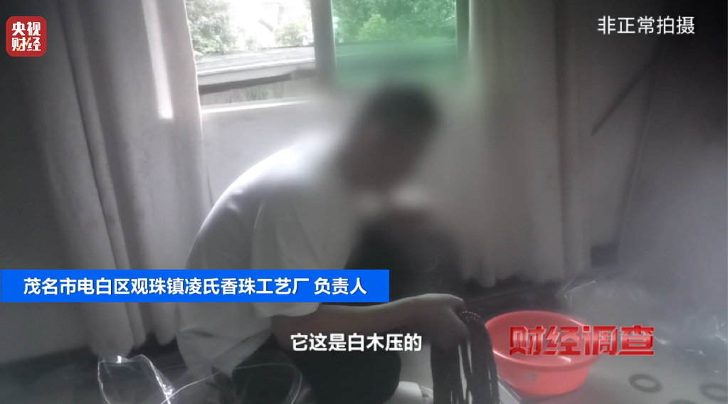 面对“熟人”,负责人坦言手串是用“白木”制成——即沉香采收后剩下的无香无油的木质部分,价值极低。