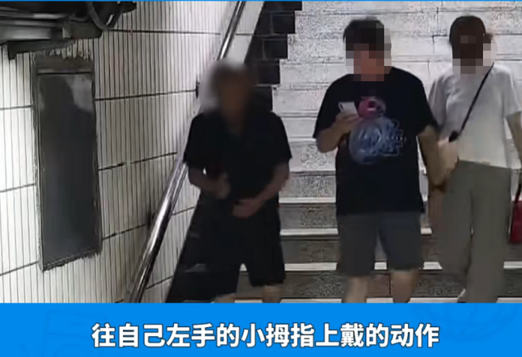查询发现,不久后有一男子在站台楼梯上弯腰拾取了什么东西,并且有把东西往手指上套的动作。