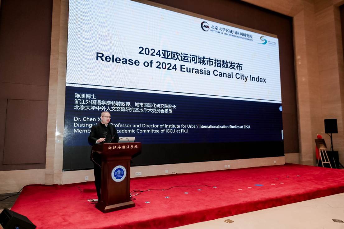 会上,浙江外国语学院大运河国际研究中心和北京大学区域与国别研究院联合发布了《2024亚欧运河城市指数》报告。