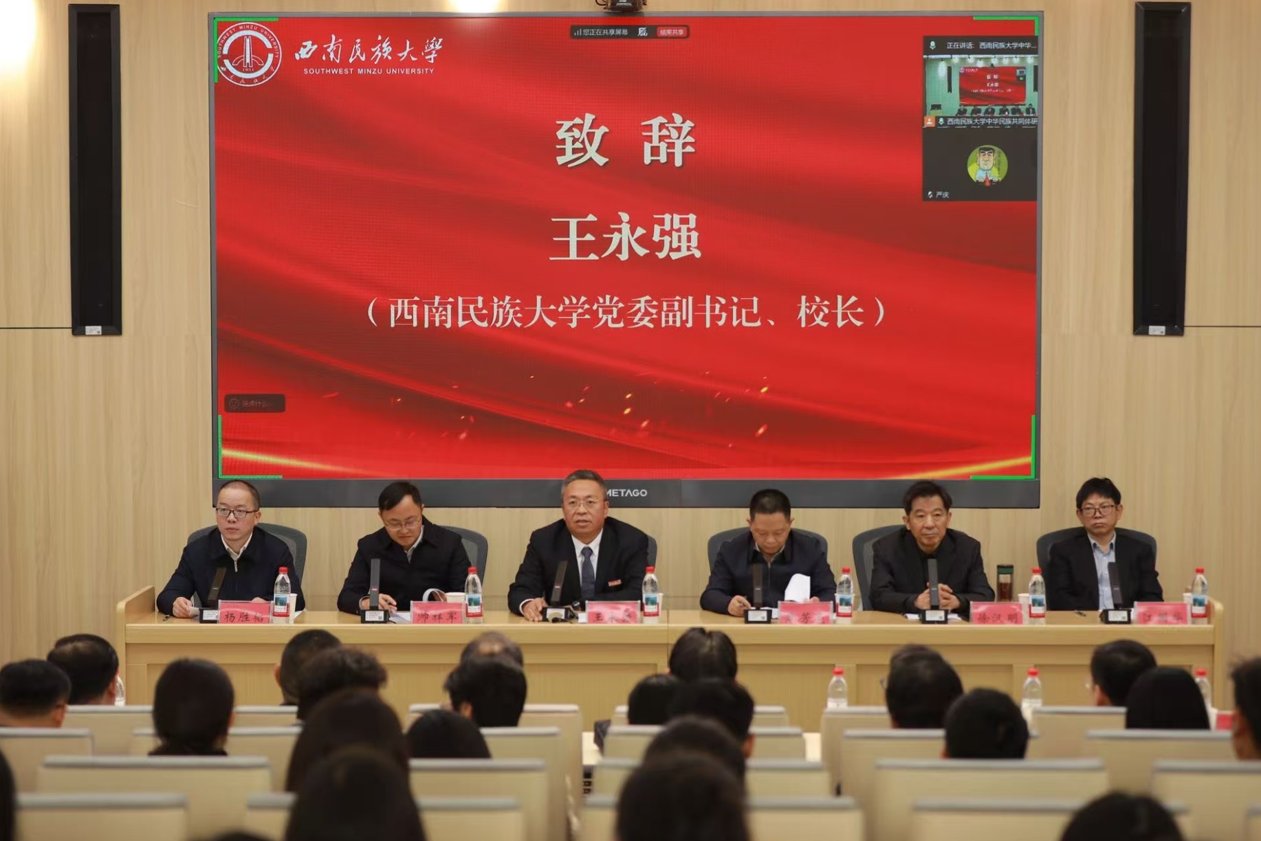 开幕式上,西南民族大学党委副书记、校长王永强率先发言,介绍了学校近年来在推进中华民族共同体研究方面的积极举措与显著成果。学校成立了铸牢中华民族共同体意识工作领导小组和中华民族共同体建设工作处,统筹推进相关工作;建立了中华民族共同体学院、研究基地和研究院,为教育教学、科学研究、人才培养和咨政服务搭建了坚实平台。在科研方面,近五年来成果斐然,获批国家级科研项目90余项、省部级科研项目300余项,发表CSSCI期刊论文500余篇、SCI论文300多篇,出版学术著作60余部,获省部级及以上科研成果奖40余项,为构建中国自主的中华民族共同体史料体系、话语体系、理论体系贡献了西南民大的智慧。