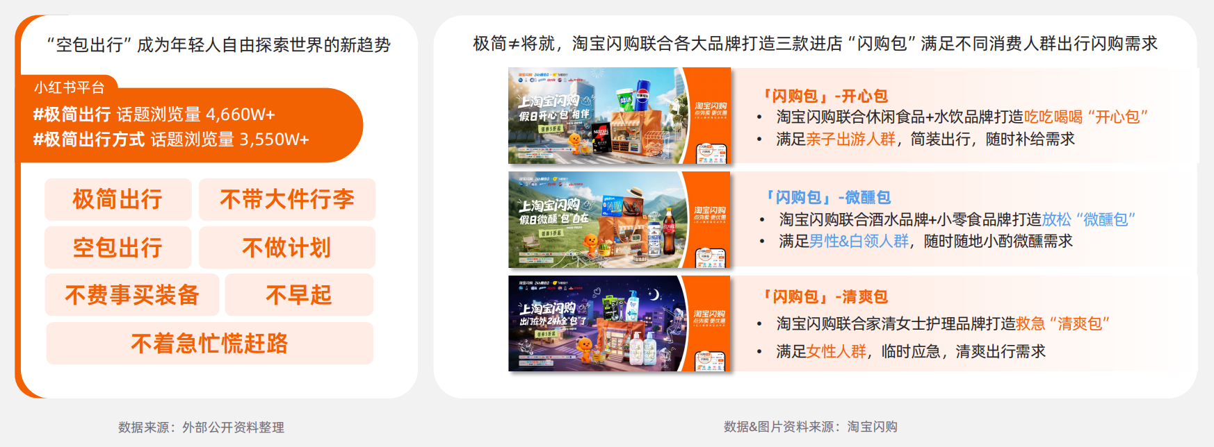 立足假日出行场景,淘宝闪购联合飞猪旅行推出“24h随便点”IP,同时通过多品牌联合营销高频出行场景增加曝光、达人联合种草等方式,将即时零售的服务半径从“到家”成功延伸至“到酒店”,在节假日出行高峰精准满足了用户全天候、多场景的即时需求。