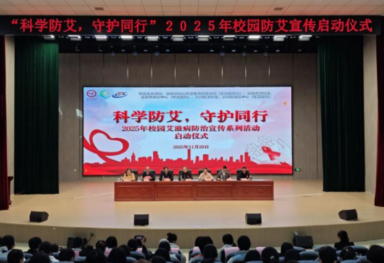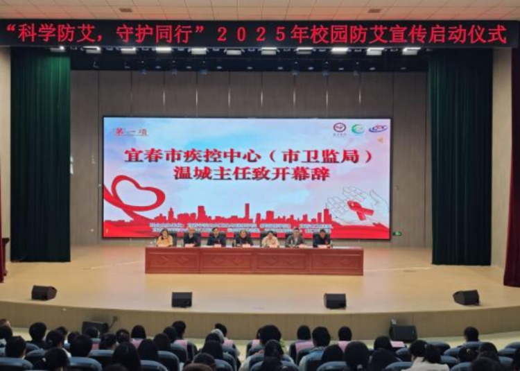 为深入贯彻“健康中国2030”战略,普及艾滋病防治知识,弘扬红丝带精神,凝聚校地协同防艾合力,11月29日,由宜春学院公共卫生与健康学院(美容医学院)联合宜春市卫生健康委(疾控局)、宜春市疾控中心(市卫监局)、袁州区卫生健康委(疾控局)、袁州区疾控中心(区卫监局)共同主办的“科学防艾,守护同行”2025年校园艾滋病防治宣传系列活动圆满落幕。活动以启动仪式为开篇,串联专题讲座、防艾知识市集两大核心板块,通过线上线下联动形式,为全校师生呈现了一场兼具专业性、思想性与趣味性的防艾科普盛宴,覆盖师生超1800人次,发放宣传资料1000余份。